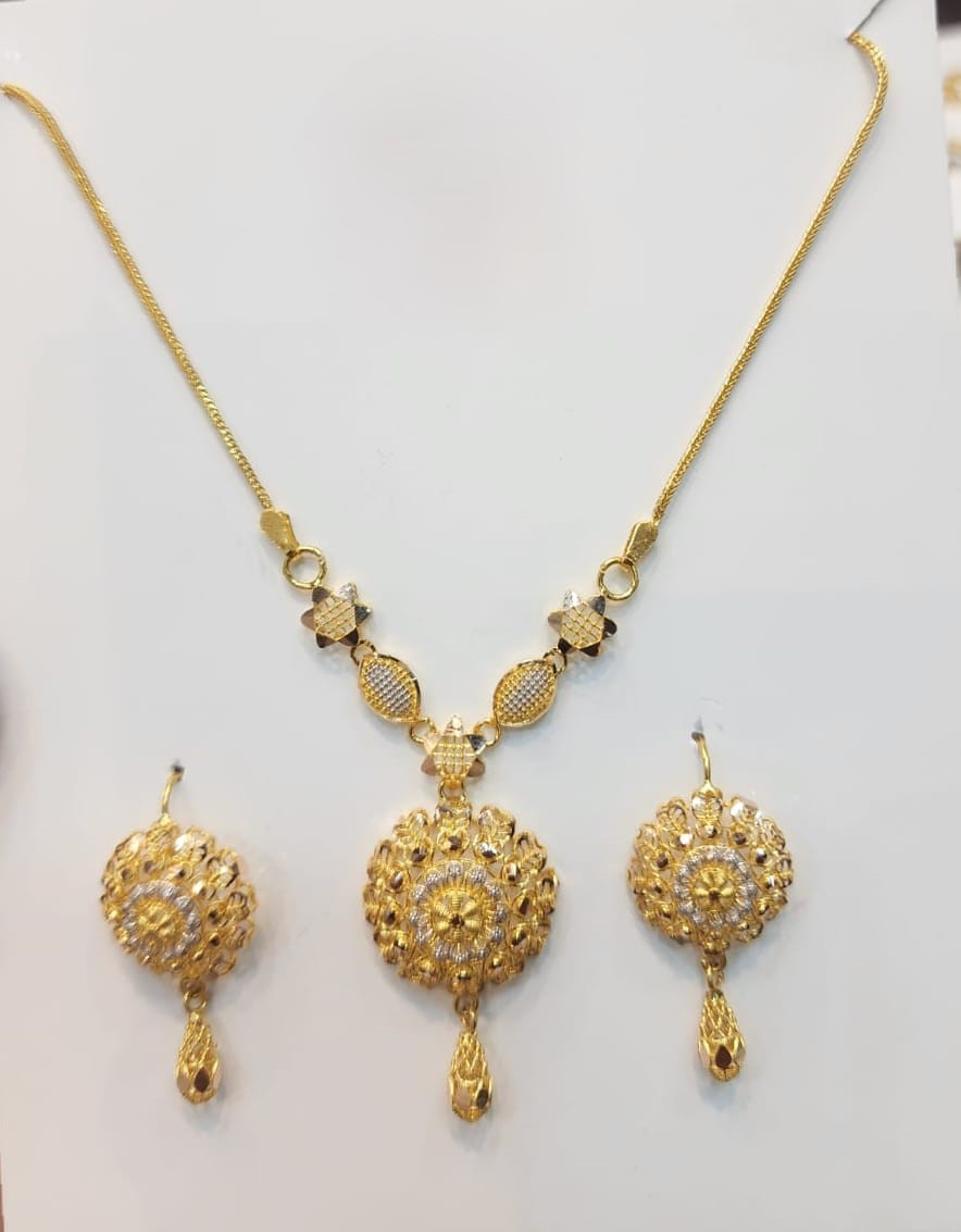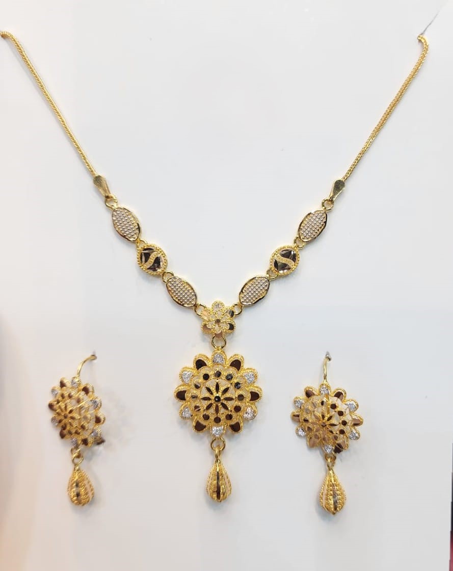 Feel like royalty with the 21ct Amira necklace and earring set. Crafted from pure 21ct gold, this luxurious set features a design that exudes timeless elegance. The intricate details and the rich luster of the gold create a sense of sophistication that will turn heads wherever you go. Whether you’re attending a special occasion or dressing up for a night out, the Amira set is sure to make you feel confident and radiant.