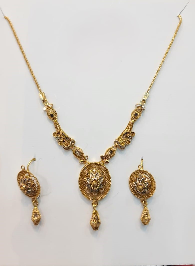 Make a grand entrance at any event with the dazzling 21ct gold Soiree necklace and earring set. Crafted from pure 21ct gold, this set exudes opulence and sophistication. The rich luster of the gold and the exquisite design will ensure you turn heads wherever you go.