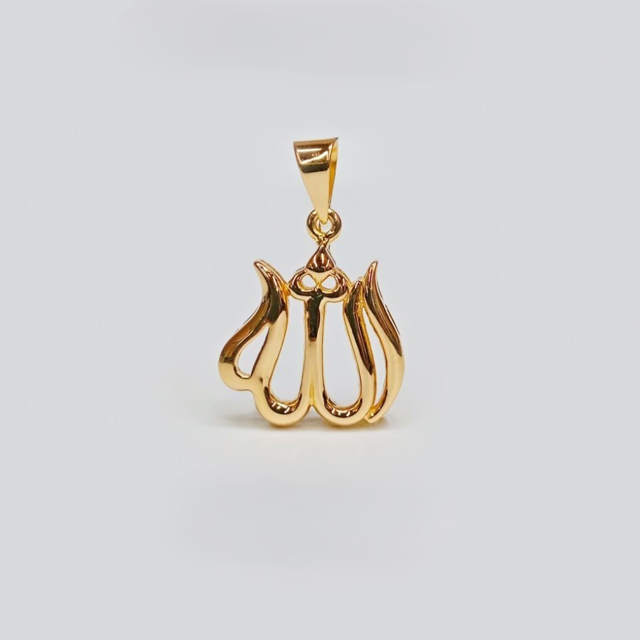 This exquisite 22ct (≈91.6% pure) gold pendant presents the name الله in refined Arabic calligraphy. The design blends classical calligraphic forms with a polished contemporary finish, creating a warm, radiant piece that is both spiritual and stylish. Carefully finished to showcase smooth curves and reflective surfaces, the pendant is lightweight for everyday comfort yet striking enough for formal events.