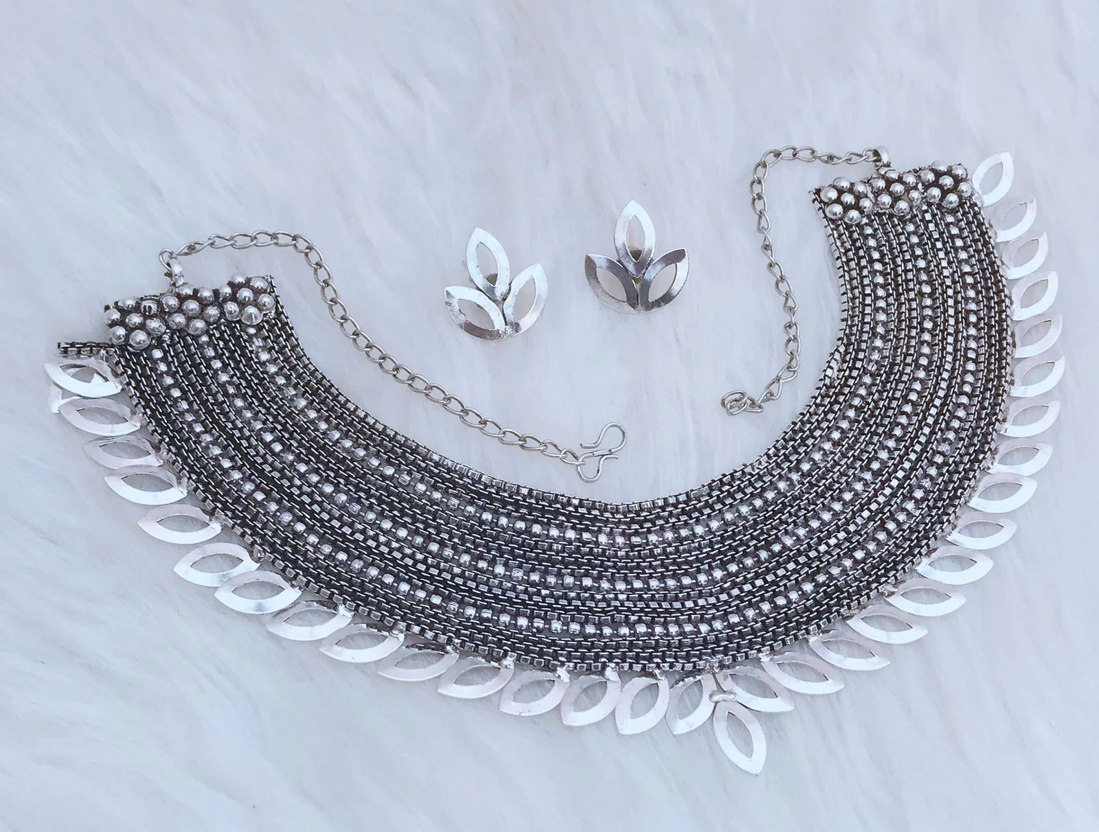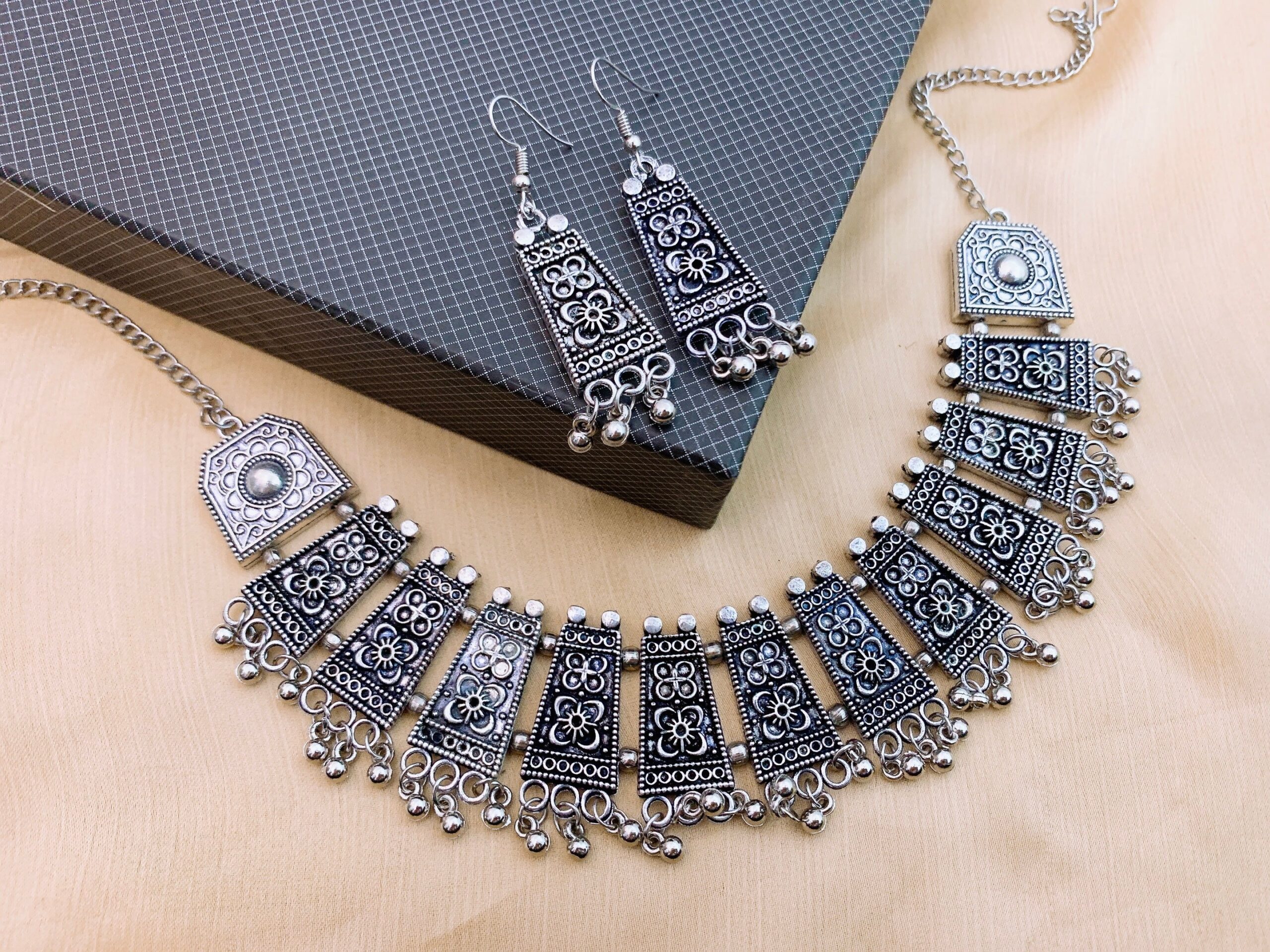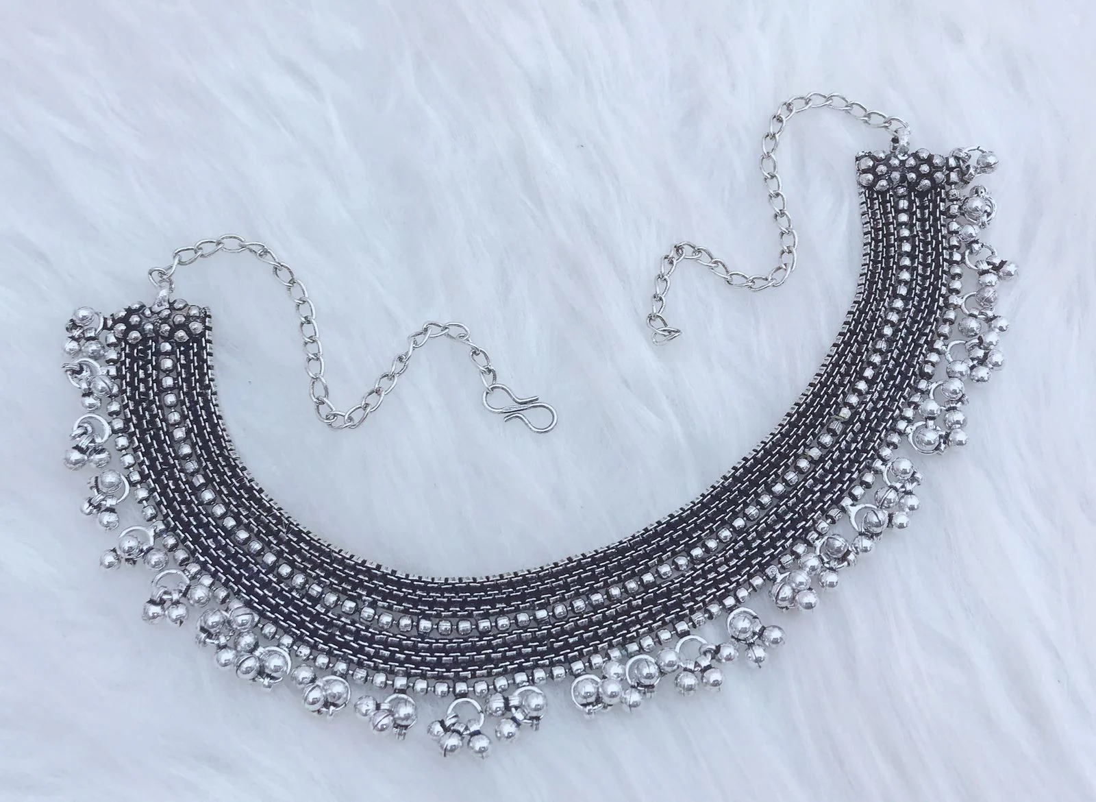 The Chrome Hearts Style Hong Kong Edition represents a unique fusion of gothic industrialism and traditional heritage craftsmanship. Our crystal variations feature high-grade faceted stones in Sky Blue, Forest Green, and Blossom Pink, set against vintage oxidized silver with star-burst engravings and delicate seed pearl drops. For a more raw, tribal look, our oxidized silver bib and choker sets showcase intricate floral plates and rhythmic metallic charms that create movement and texture, embodying the edgy spirit of Hong Kong streetwear.