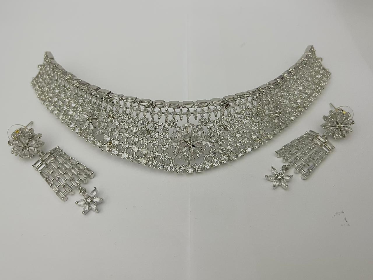 Looking for a premium 1 carat bridal necklace set in Pakistan? This luxury silver crystal choker set is designed to give brides a royal and elegant look on their special day. Featuring a brilliant 1 carat center stone with intricate lattice craftsmanship and high-quality crystal detailing, this necklace reflects exceptional sparkle and bridal sophistication.